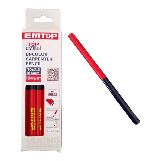 Set de 12 unidades de lapiz de carpintero ovalado bicolor, MINA AZUL Y ROJO. MARCA EMTOP
