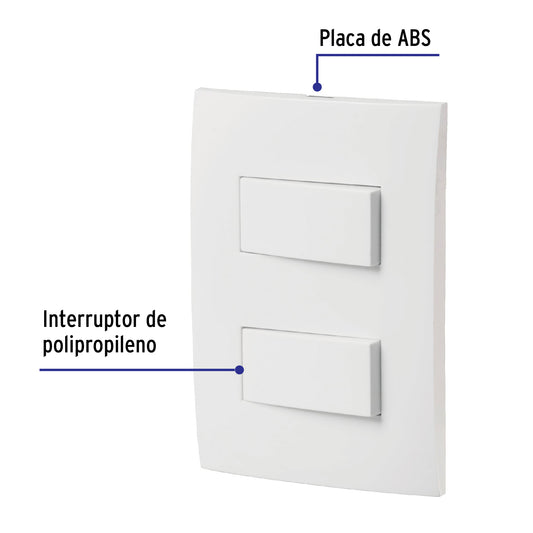 Placa Armada Contacto Y 2 Interruptores, Línea Oslo, Blanco