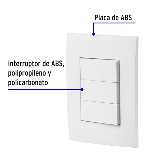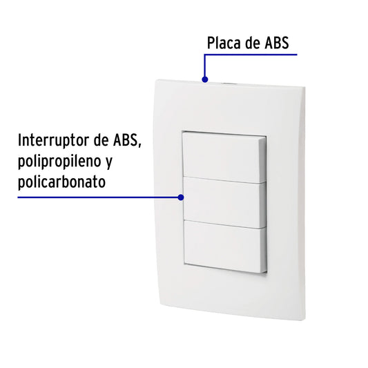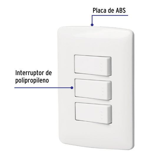 Placa Armada 3 Interruptores Sencillos, Línea Oslo, Blanco
