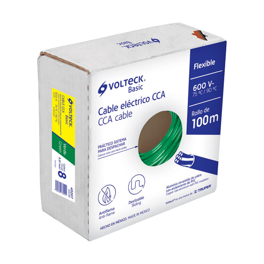 Rollo de 100 metros de cable THW CCA 8 AWG verde, Basic VOLTECK