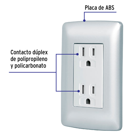 Contacto Dúplex Aterrizado, Color Plata, Línea Italiana