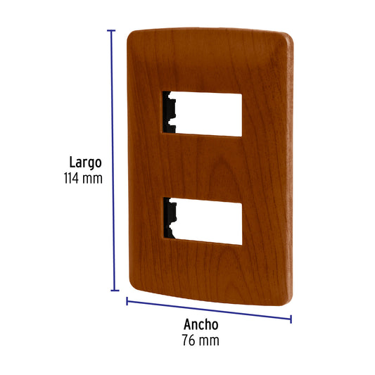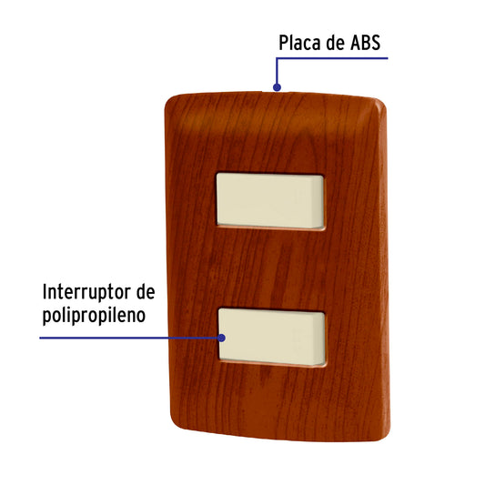 PLACA 2 MÓDULOS DE ABS, LÍNEA ITALIANA, ACABADO MADERA