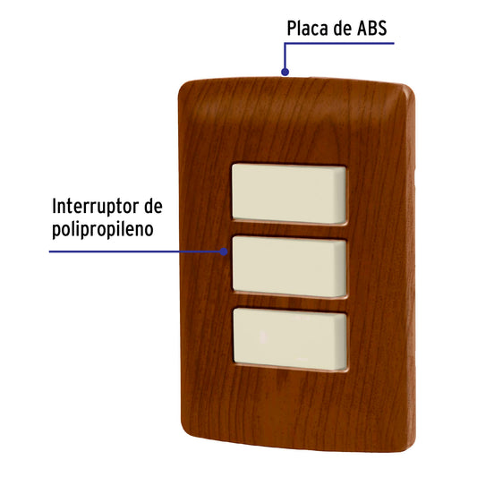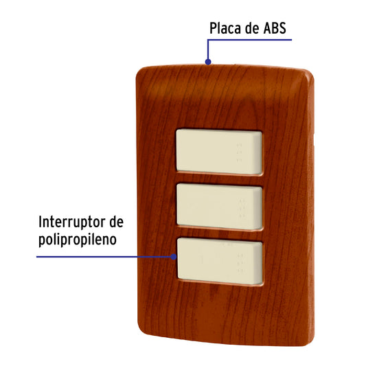 Placa Armada 3 Interruptores Sencillos,Madera,Línea Italiana