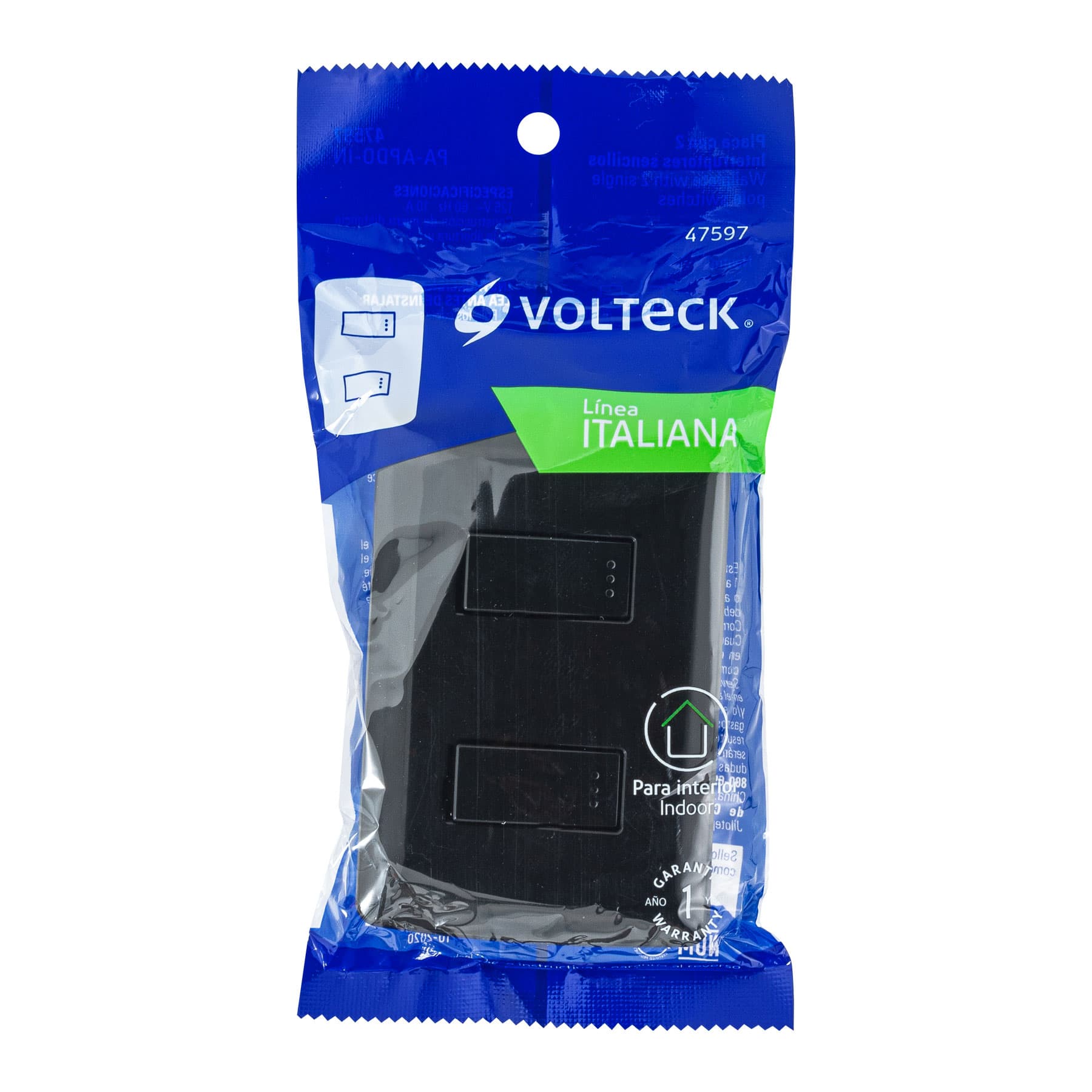 Placa Armada, 2 Interruptores Sencillos,Negro,Línea Italiana